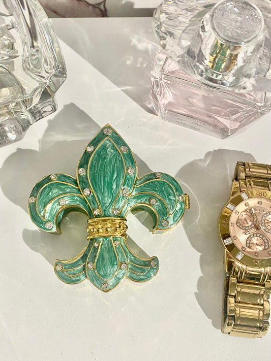 Flour De Lis Green Trinket Box