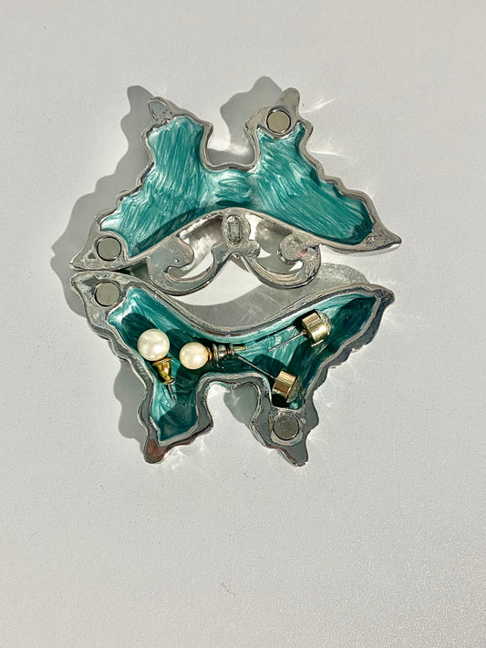 Frog and Baby Frog On A Dark Green Leaf Trinket Box