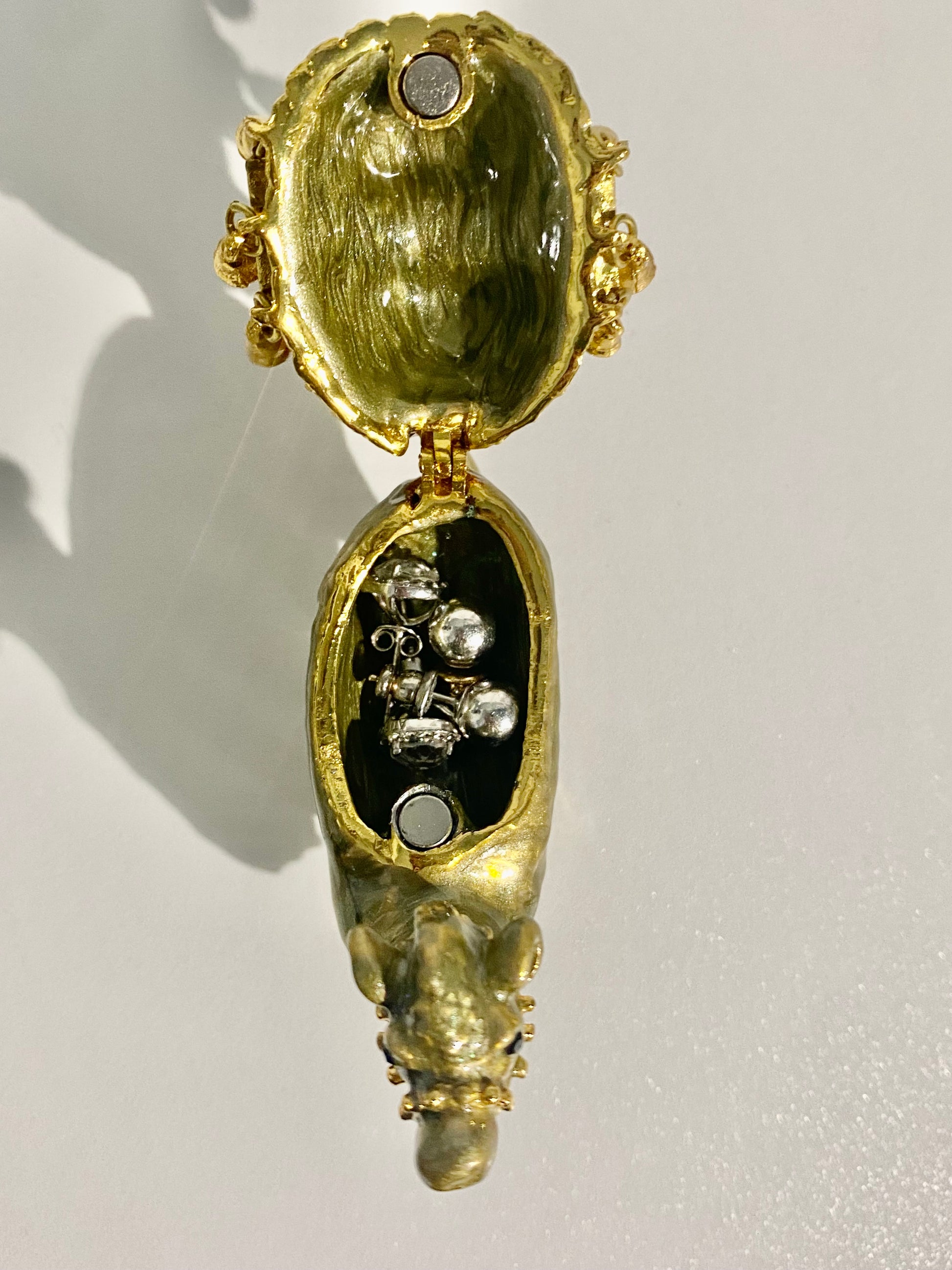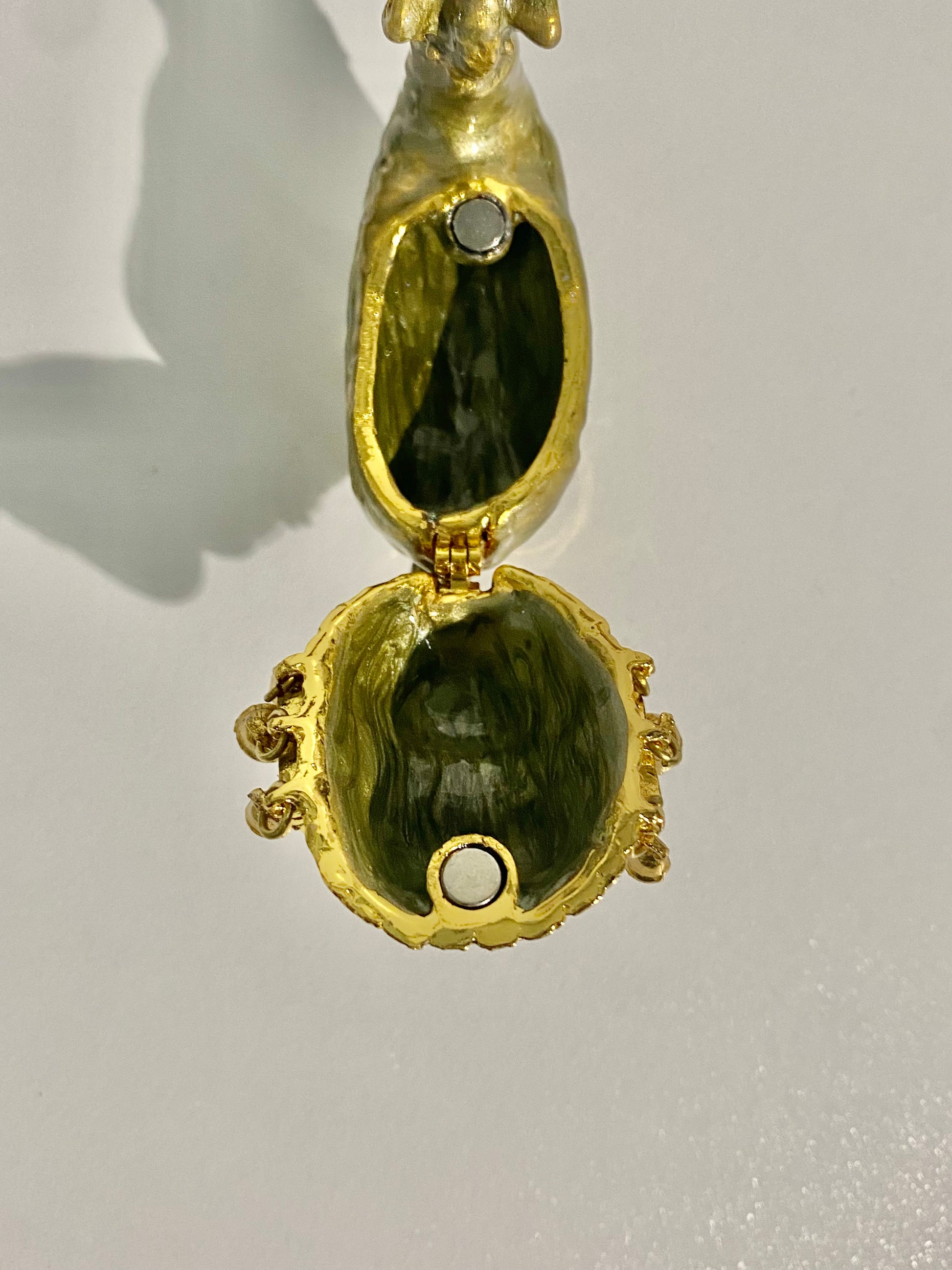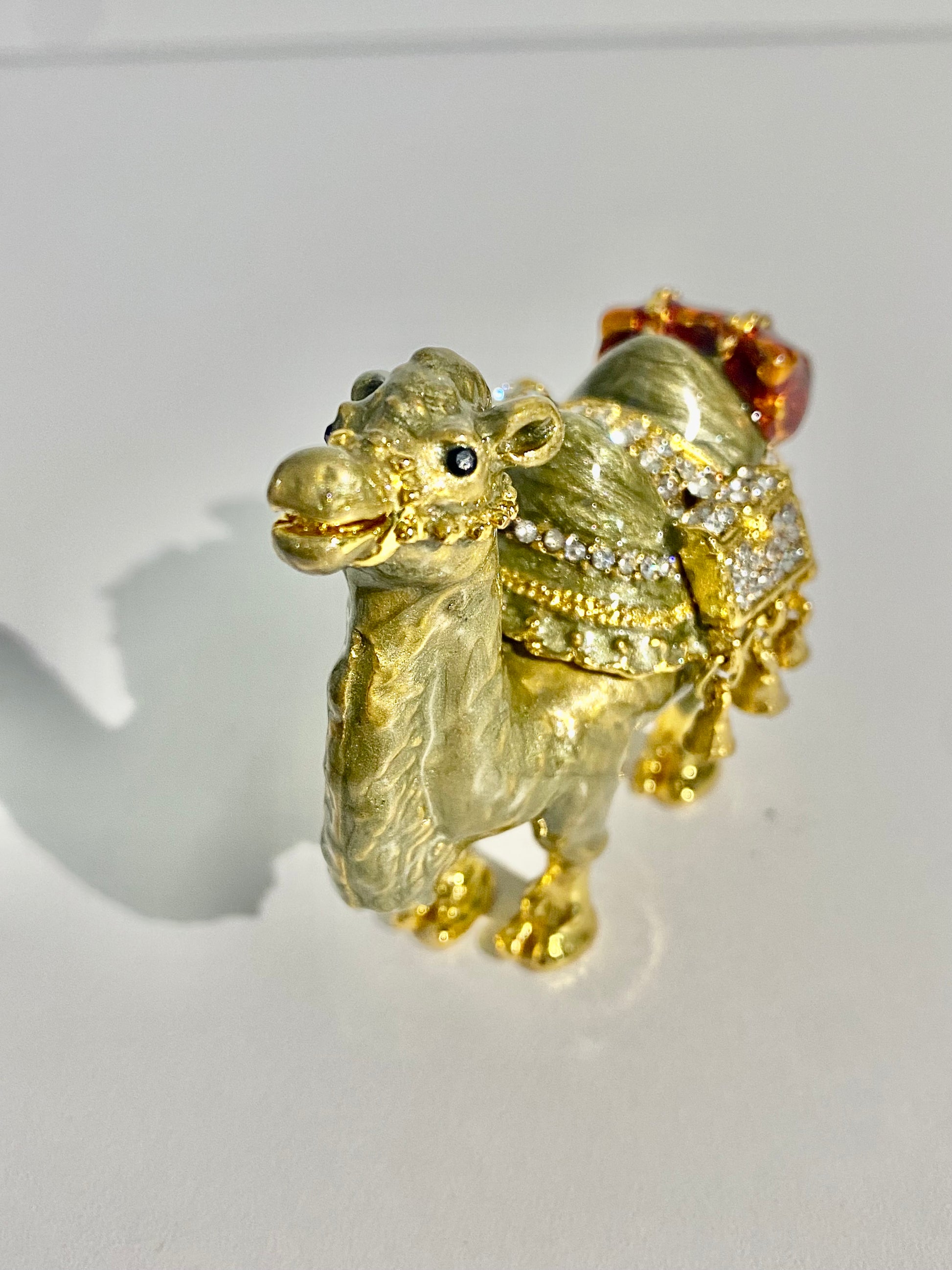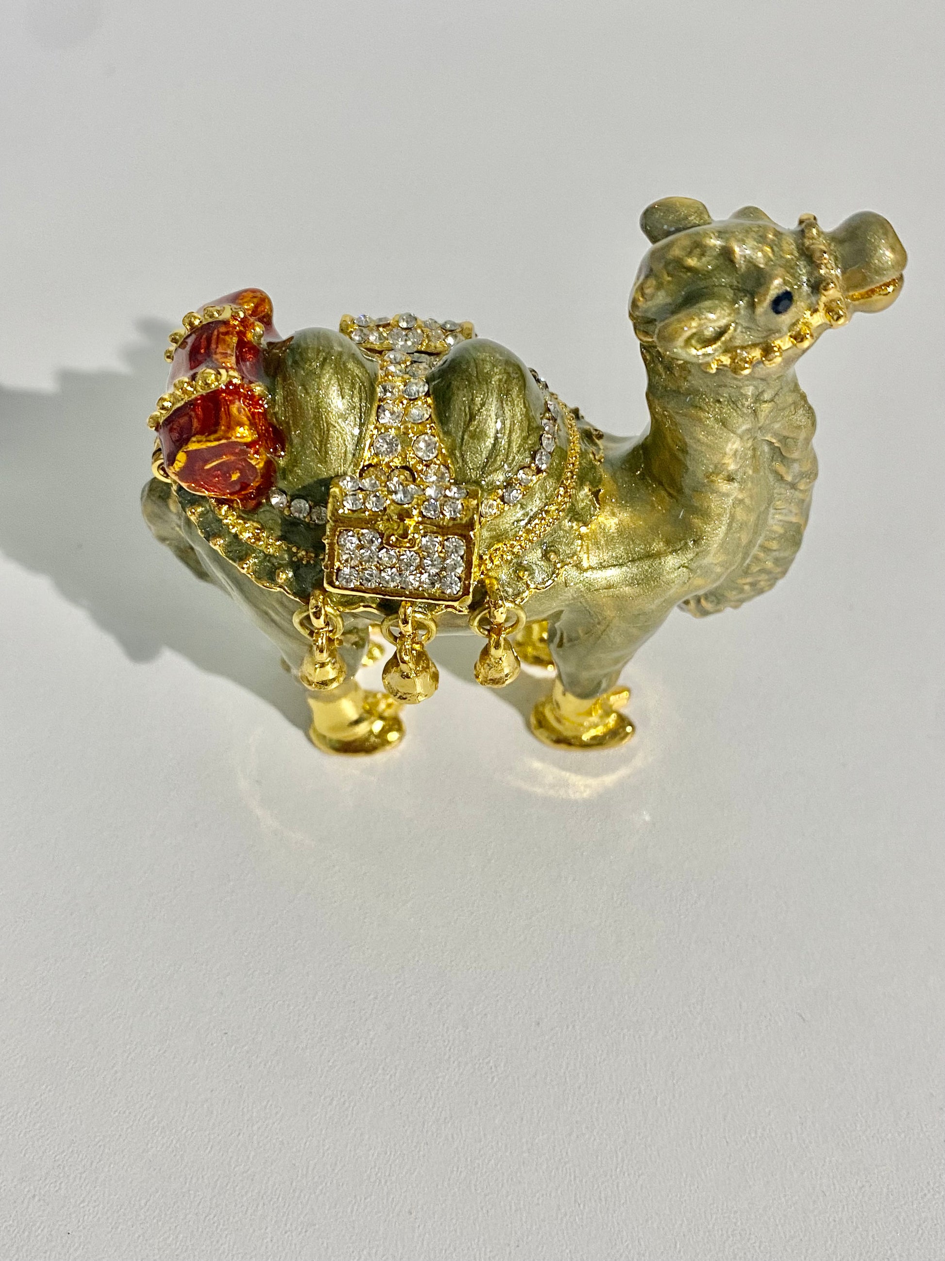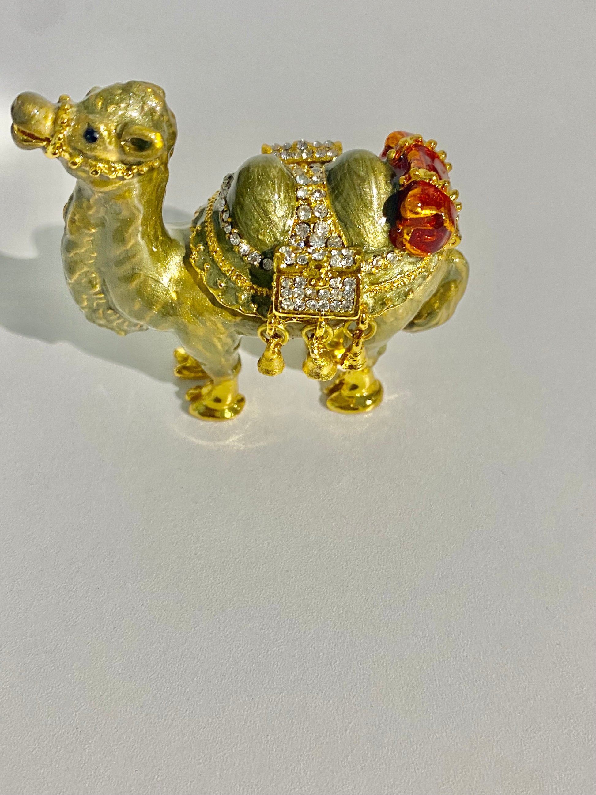 This golden camel trinket box is embedded with crystals and hanging bells. Keep this box as home décor, store small jewelry or gift to a friend or girlfriend!