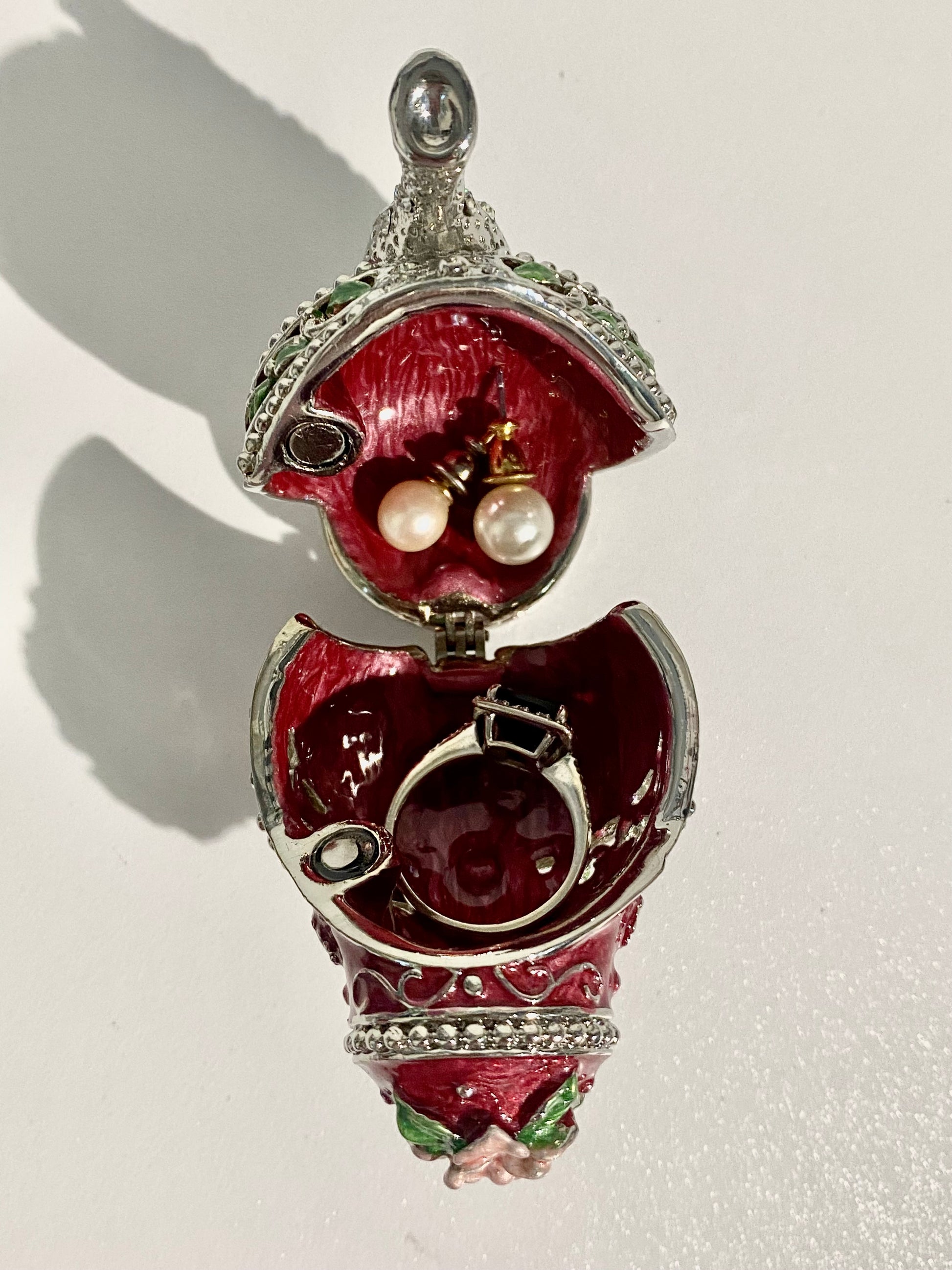 This red teapot trinket box is encrusted in gems. Keep this box as home décor, store small jewelry or gift to a friend or girlfriend!