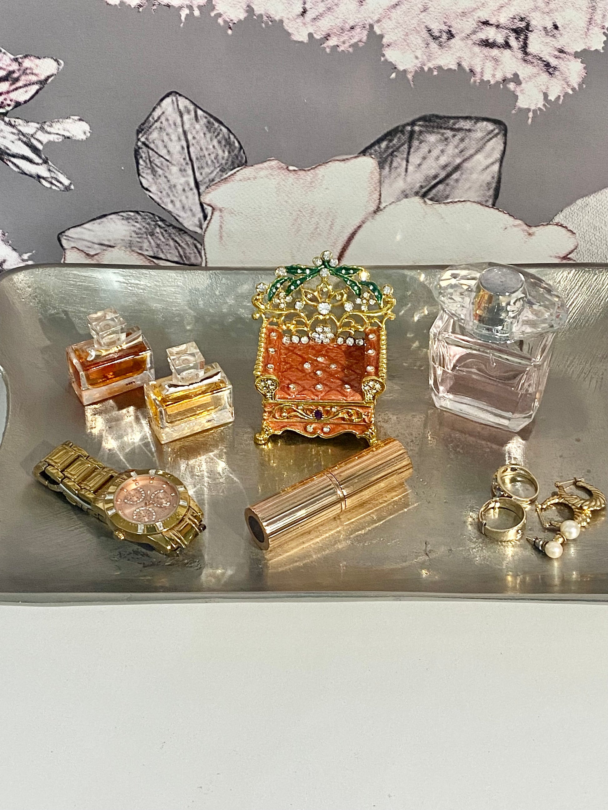 This orange loveseat chair trinket box features amethyst and emeralds and is embedded with rhinestones. Keep this box as home décor, store small jewelry or gift to a friend or girlfriend!