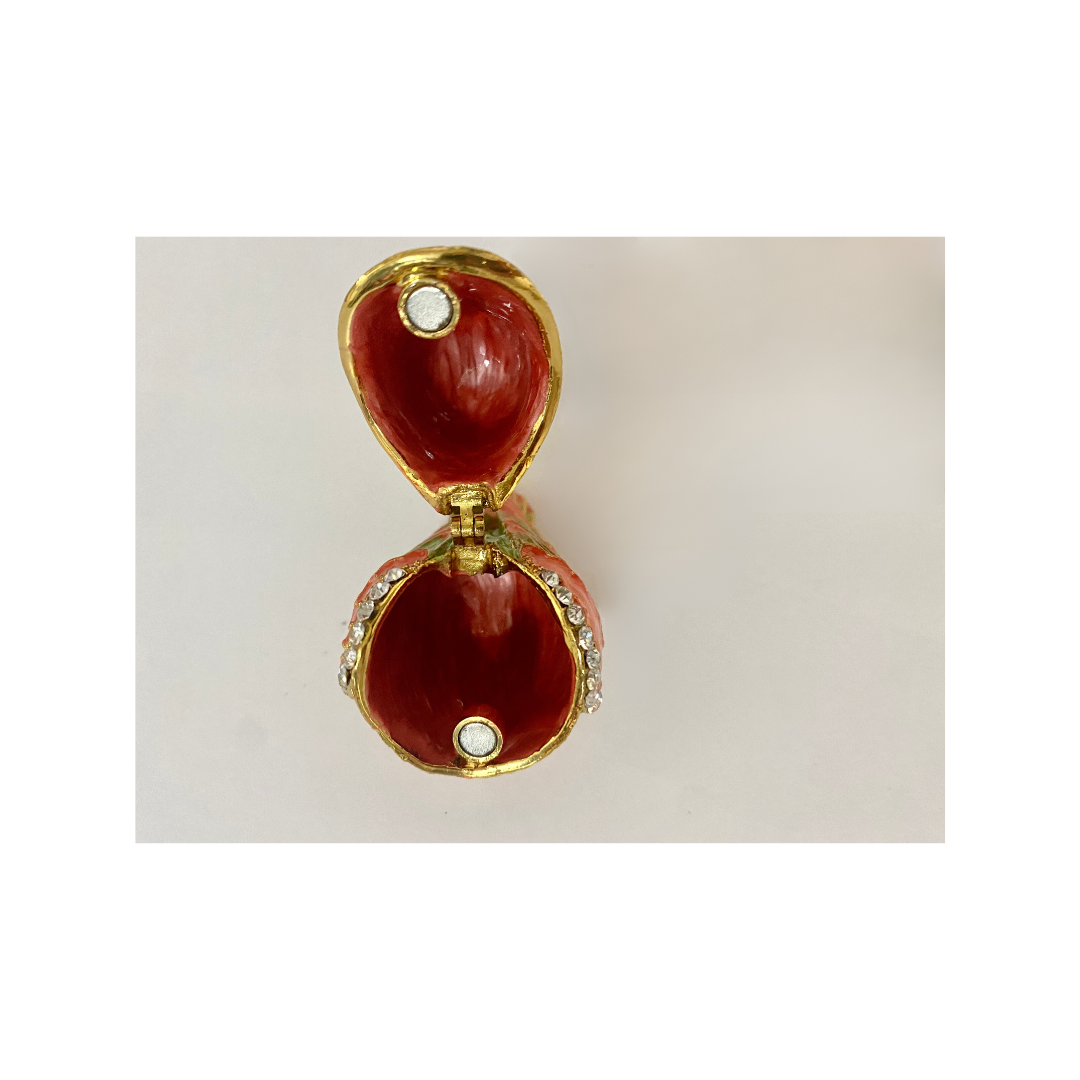 This orange barn owl shaped trinket box has sapphire eyes and is encrusted with gems. Keep this box as home décor, store small jewelry or gift to a friend or girlfriend!