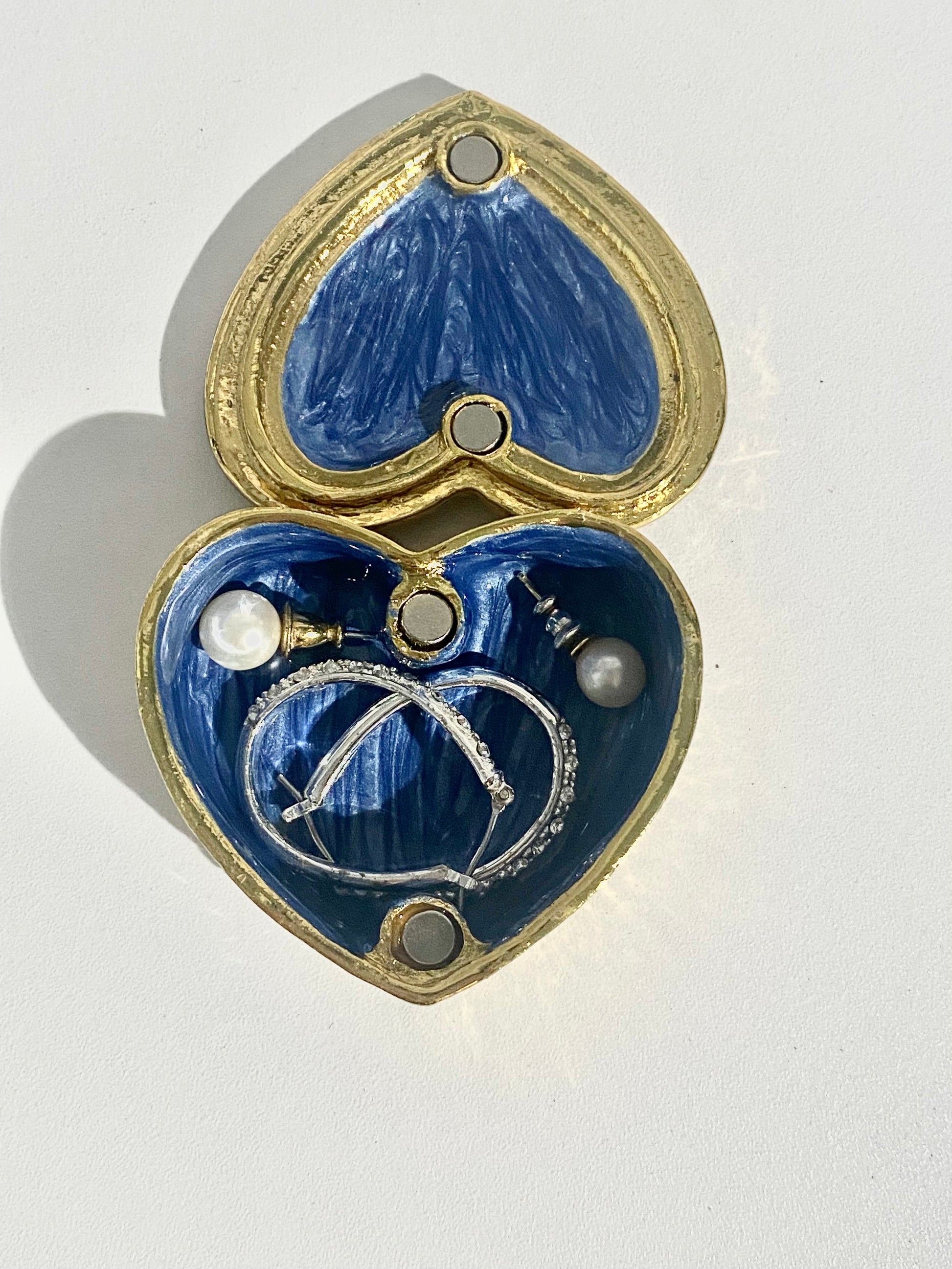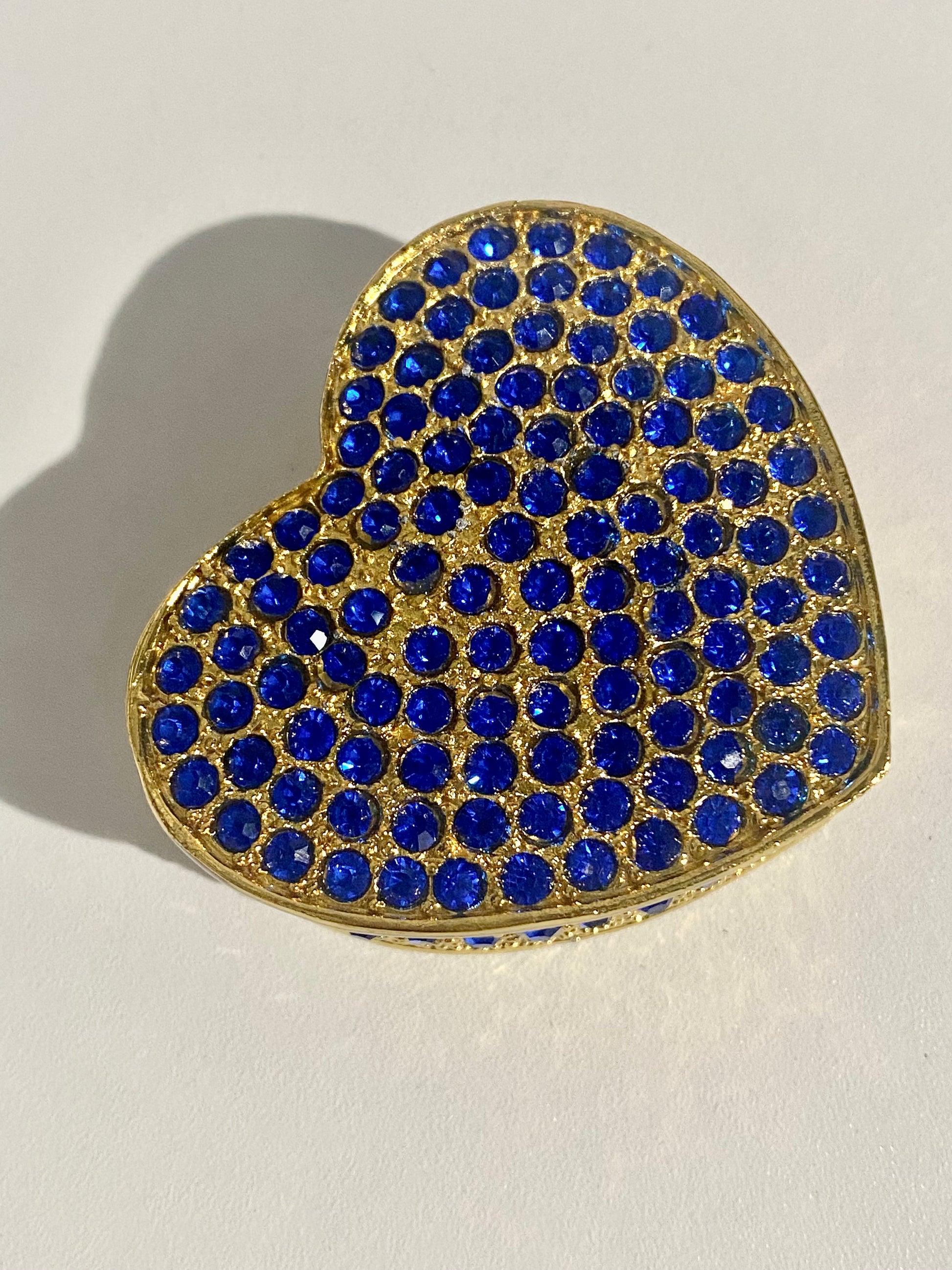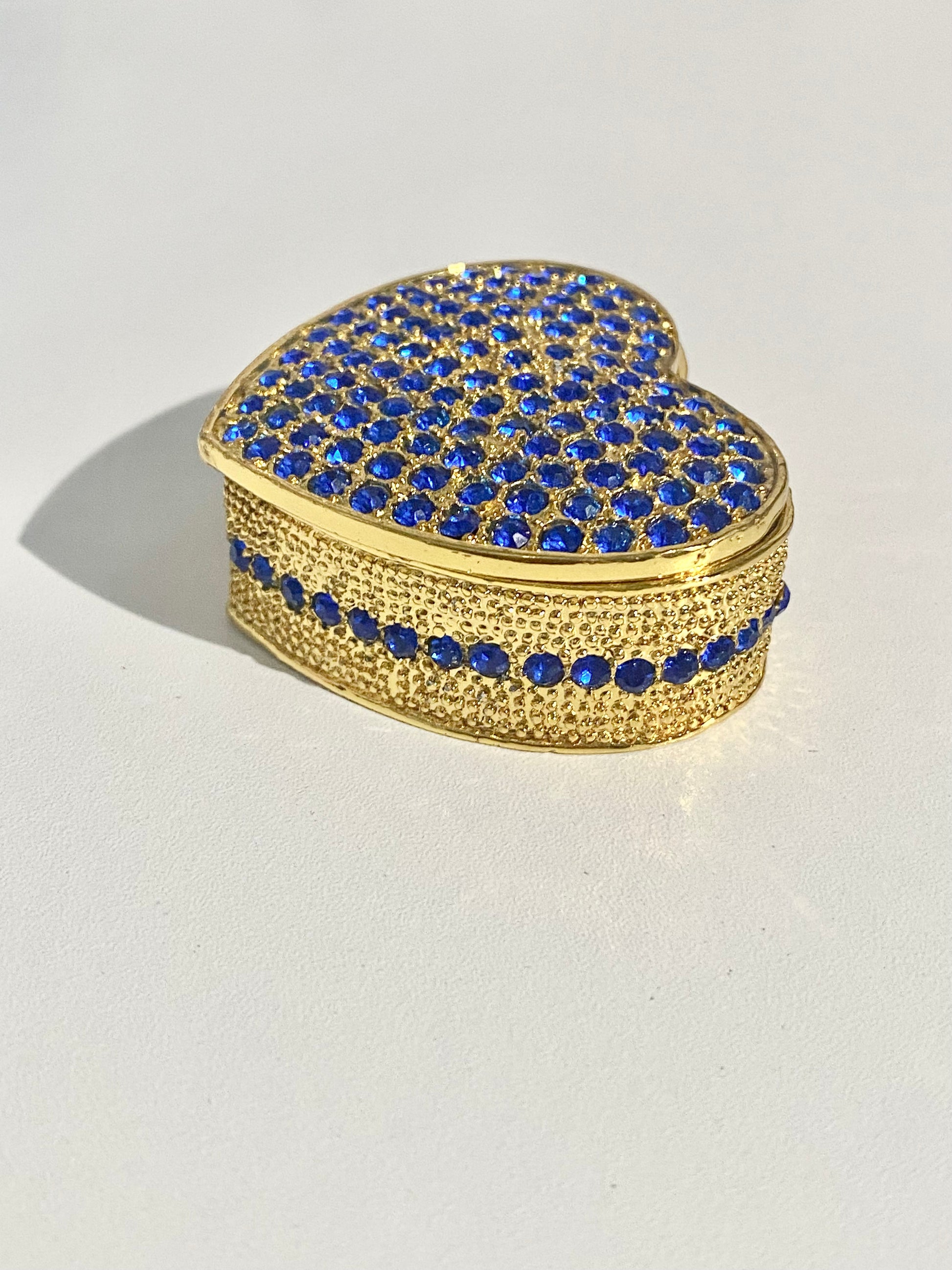 This elegant gold shaped heart is covered in sapphire gems. Keep this box as home décor, store small jewelry or gift to a friend or girlfriend!